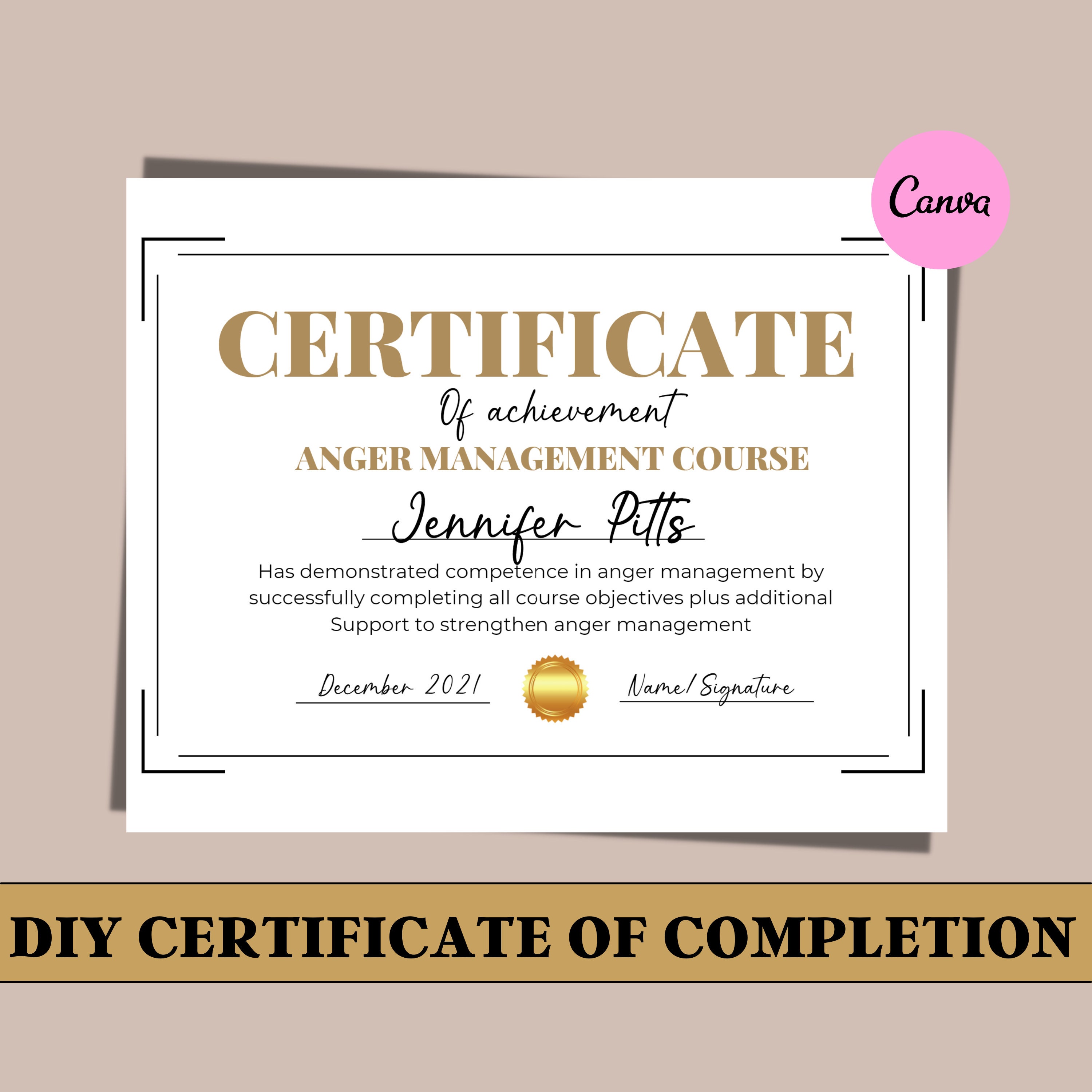 Anger Management Certificate Of Completion Template Certificate Of Completion Template Anger Management Certificate Templates